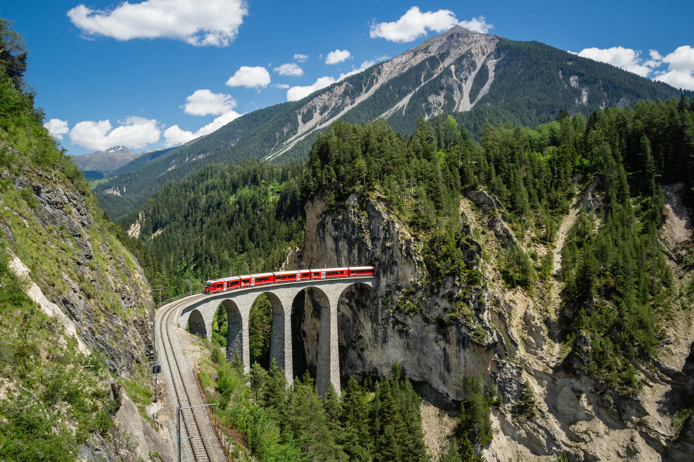 Diese Etappe unserer Grand Tour of Switzerland führte in sechs Tagen durch einige der beeindruckendsten Regionen des Landes. Der Startpunkt war Chur, von wo aus es mit herrlichen Ausblicken Richtung Klosters und weiter nach Davos ging. Bereits hier zeigte sich die alpine Vielfalt der Schweiz in ihrer ganzen Pracht. Über den spektakulärem Flüelapass führte die Route ins Engadin nach Zuoz. Ein besonderes Highlight war der berühmte Landwasser-Viaduckt. Ein echtes Wahrzeichen der Region. Danach ging es weiter nach St. Moritz, wo der See und die Bergen einluden. Die Fahrt über den Julierpass zum tiefblauen Marmorera See bot erneut beeindruckende Hochgebirgslandschaft. Anschlissend führte der Weg über den San Bernardino Pass ins Tessin. In Bellinzona, Locarno und Lugano wechselte die Kulisse spürbar mediteranes Flair, Palmen und südliche Leichtigkeit bestimmten das Bild. Den Abschluss dieser abwechslungsreichen Reise bildete die Fahrt über den geschichtsträchtigen Gotthardpass, ein würdiges Finale einer eindrucksvollen sechstägigen Etappe.